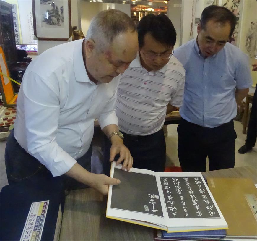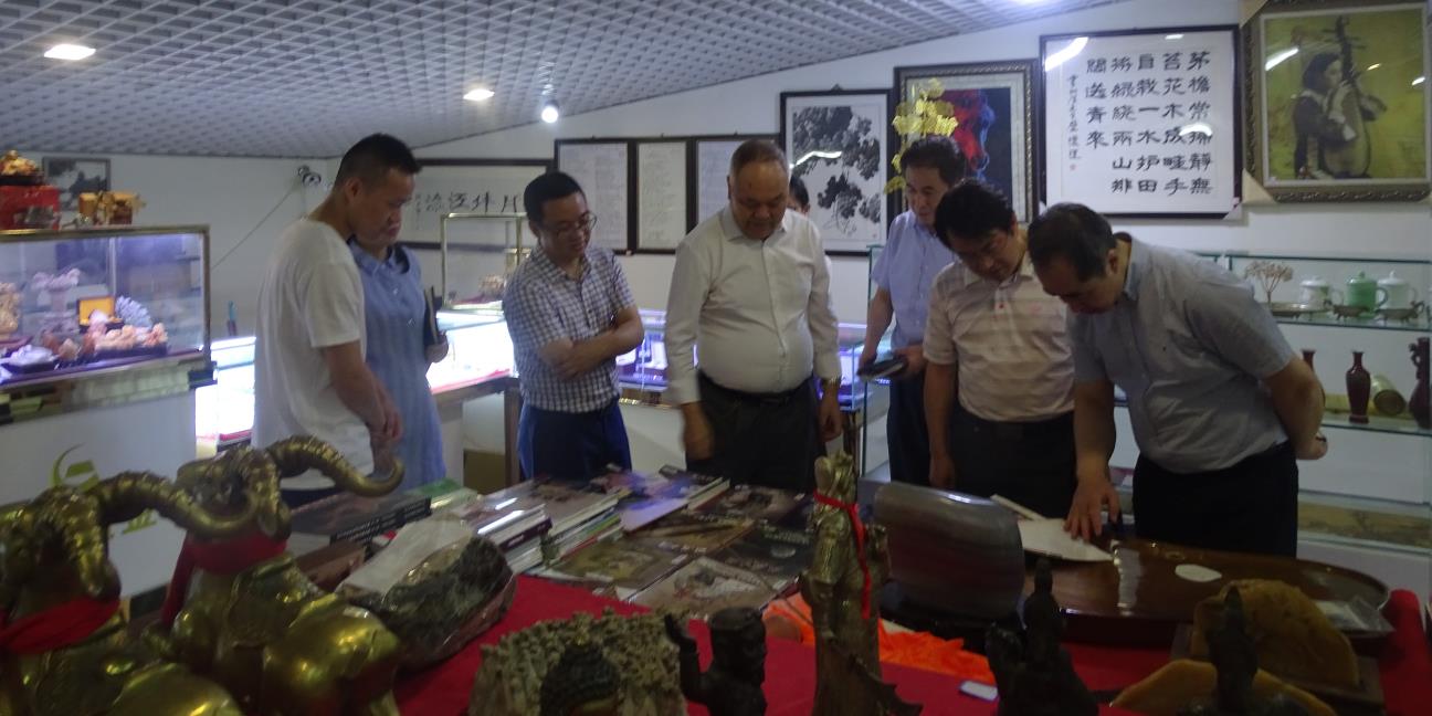 金牛区领导班子一行人还参观了书画,六体书法专辑“千字文”,对隶书,篆书的作者汪木即老师很是佩服!还参观了我院为老百姓代卖服务的藏品。大家认真听刘院长详细的讲解藏品的历史,工艺制作等等,津津有味。对我院的服务工作认真听取报告,众人在欢声笑语中离开了研究院。